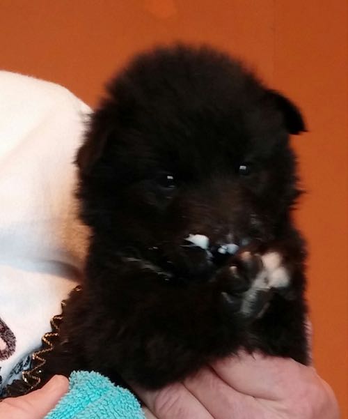 Two testicles down at 8 weeks old.